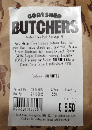 pork Gluten Free sausage that I'm sure