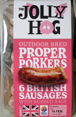 6 sausages in a 400g pack £3.00 with