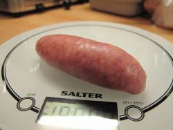 90x30mm before cooking, 82x30mm