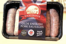Wicks Manor - Olde English PorkCooked up though, yes, we would agree they look very nice with a medium texture, meaty and with a good succulent bite. The skins though did squeeze a little sausage eruption at both ends of some of our samples, and so the lengths increased, OK obviously not affecting the taste. However the flavour wasn't as deep as what we thought it would be and the weight loss at 30% was a little surprising. With a bold title of "Olde English", we were expecting something with more spice and an old style attitude.